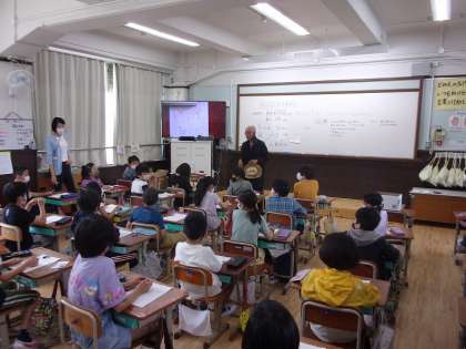 4年生は,総合的な学習の時間にカイコについて学びました。塩野屋さんに来ていただき,本物のカイコの幼虫をいただき,カイコについて色々とお話をしていただきました。