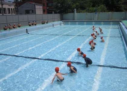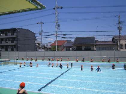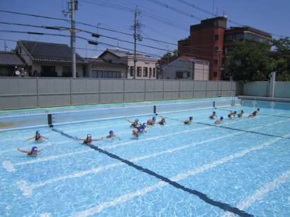 2日(木)の3・4時間目に,低水位のプールで「水なれ」の学習をしました。