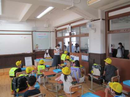 3日(金)の午後には,引き渡し訓練を実施しました。大きな地震が起きた時の避難の仕方や行動について学習しました。