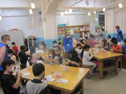 前半の工房学習では「セラミックスで電気を起こそう」という学習をしました。セラミックスの性質を利用した工作をしました。