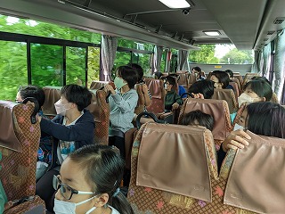 バスが出発して,しばらく経つと,風景が変わってきました。「あっ,担任の先生の出身の中学校だ!」「転校した友達の通っている小学校だ!」「あっ,霧が出てる!生まれてはじめて見た!」 など,子どもたちは変わっていく景色一つ一つに反応しています。