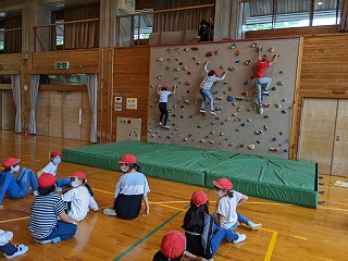 静かにルール説明を聞き,一人ひとり壁を登りました。