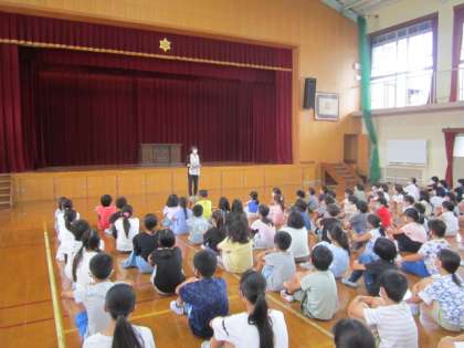 1学期終業式のあと、教職員から子どもたちへ夏休みの過ごし方についての話をしました。
