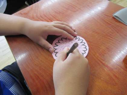 考えたり思ったりしたことを、「人権の花」のカードに書きました。「〜していきたいです。」「〜な自分になりたいです。」と、子どもたちは「人権の花」に書いていました。