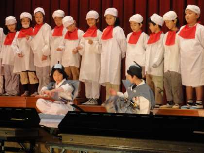 16体のお地蔵さんに交じって,いたずらをするキツネのお話です。