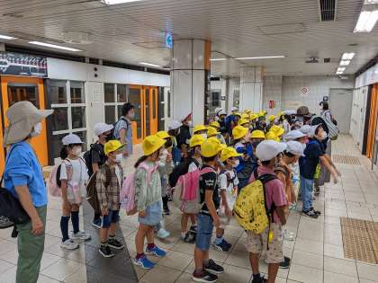 地下鉄内での態度は全くおしゃべりがなく、また、2年生が1年生に席を譲るなど、態度はばっちりでした。