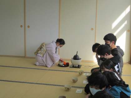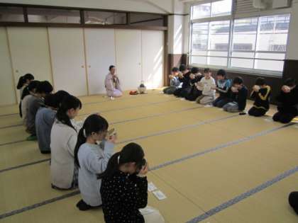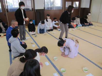 24日(火)に「茶道体験」を行いました。地域の方を講師としてお招きし、茶道についてのお話やお茶のいただき方について教えていただきました。