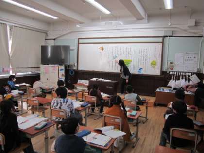 1月31日(火)の6校時に、2年い組で校内研究授業を行いました。道徳科の授業で、「だれにでもやさしくする」とはどのようなことかについて子どもたちが考える学習を、教職員が参観しました。