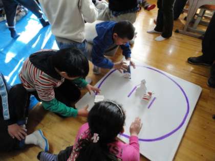 初めに,上京支部の歌を歌って盛り上がった後,「トントン相撲」をしてみんなで交流しました。