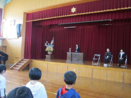 新しく着任した3名の教職員の紹介を、校長先生から聞きました。そして、着任した教職員を代表して、1名の先生からお話を聞きました。