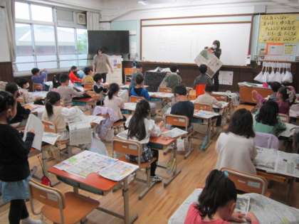 「途中で切れることなく、どれだけ長く新聞紙を指で切れるかな?」と言いながら、新聞紙を細く長く切っていました。