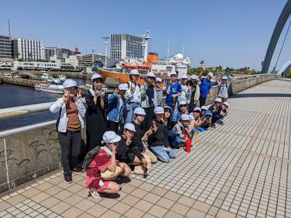 名古屋港水族館での学習を終えてバスに戻ります。潮風を受けながら橋を渡ります。