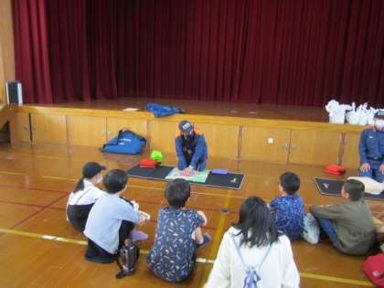 子どもたちが、AEDの使い方など体験する「普通救命講習会」や、地域のお年寄りのお宅を訪ねてお話をしながら安全を確認する「安否確認訓練」を行いました。