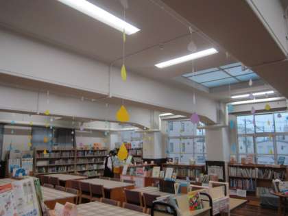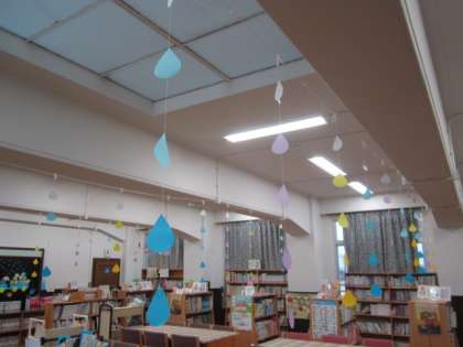 今、図書館の中は、雨の日を楽しむことができる雰囲気になっています。梅雨の時期に合わせて、図書ボランティアのみなさんが整備してくださいました。