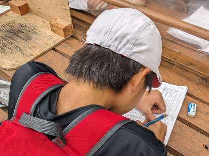 野外炊事を済ませたグループから、振り返りをしました。3日間を思い起こし、頑張ったことは何か、グループで協力できたことは何か、しっかりと記録しました。
