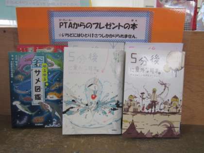 PTAの皆様に図書館へ購入していただいた本も、子どもたちに紹介していただいています。