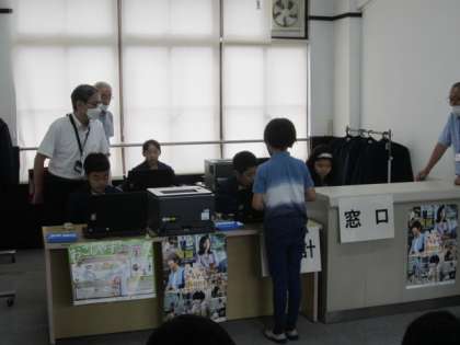 子どもたちは、当日までに「働く」ことについて考えたり、様々な仕事について調べたりしてきました。当日は、各ブースの職員の方から業務についての研修を受けた後、実際に業務を体験しました。そして、体験して気付いたことや考えたことを交流しました。