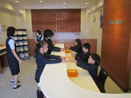 6日(水)に、京都府庁前にある「京都まなびの街生き方探究館」内に設置された職場体験施設「WORK LAND」で、業務に取り組む学習をしました。