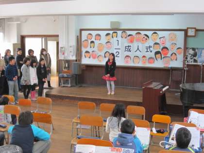 今年10才の子どもたち,20才の自分に贈る言葉を発表したり,みんなで合奏したりしました。