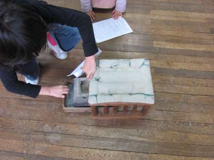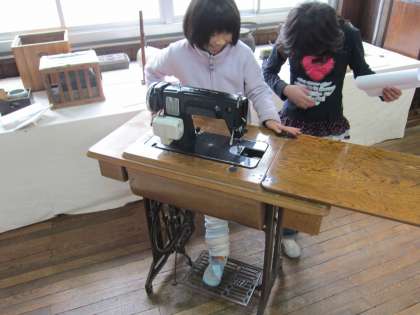 正親校の資料室にあったわらじを調べている子は,