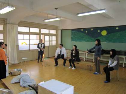授業は,「劇」に取り組んだのですが,教育相談をしていただいている盲学校の先生にも授業を参観していただきました。