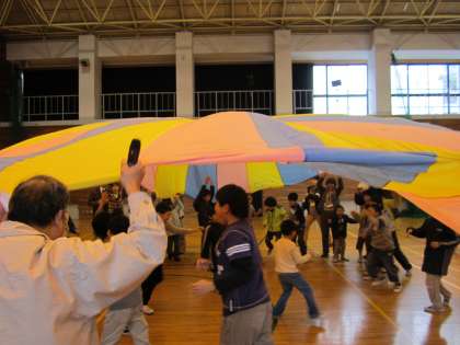 その後,アリーナに場所を移して,ゲームをしたりバルーン遊びをしたりしました。