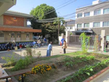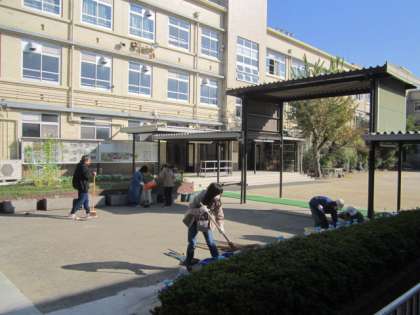 今月は、地域の方、PTAイベント企画委員の方、1年生の保護者の方にお世話になりました。校門や体育館の周辺をきれいにしていただきました。