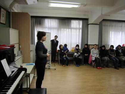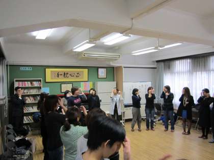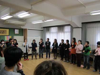 脳の働きを良くするためのリズム運動をしながら,「ほめて育てることの大切さ」を学びました。