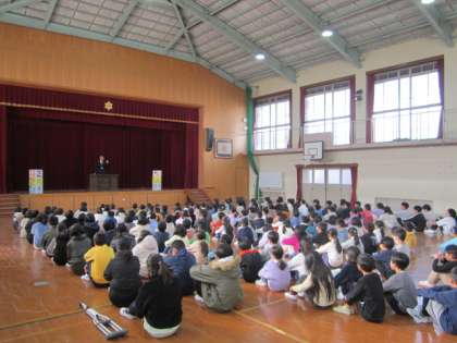 子どもたちは、学校長が投げかけた話をしっかりとキャッチするように、話を聞いていました。