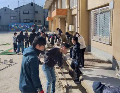 3月3日(日)正親小学校おやじの会による運動場の溝掃除が行われました。新型コロナ感染症のために4年ぶりの開催となりました。おやじの会、PTA、地域の方、児童、たくさんの方に参加していただき、運動場のまわりの溝蓋を上げて、溜まっていた砂、土、落ち葉をとりました。「たくさん溜まっていますね。」「みなさんで力を合わせて作業するときれいになりますね。」との感想をいただきました。