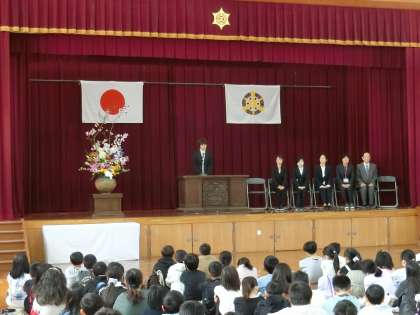 今年度、校長をはじめ9名の教職員を新たに迎えました。子どもたちは、どんな先生が来たのか、興味津々の様子でした。6年生の児童がお迎えの言葉で、着任した教職員を温かく迎えてくれました。