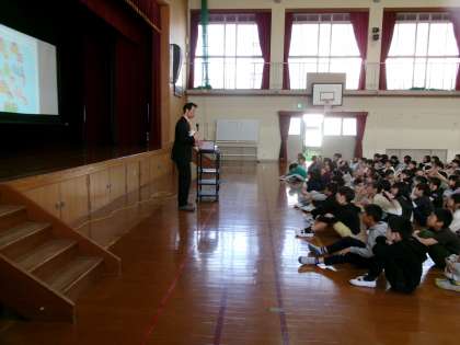 校長先生のお話もしっかり聞くことができました。今月は憲法月間なので、憲法について分かりやすくお話をしてくださいました。校長先生のお話をもとに、各経学級でも話し合います。学校の決まりなどと同じように、憲法で定められていることを知り、なぜそれが大事なのかを考える機会にしてほしいと思います。
