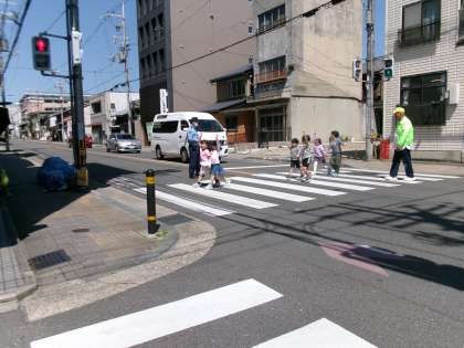 10日金曜日は、1年生の交通安全教室を実施しました。上京警察署の方々やいつも子供たちの安全を守ってくださっている地域の方々に来ていただき、横断歩道や道路の歩き方について学習しました。最後には、実際に中立売通の横断歩道を歩きました。この日は、交通安全教室で学習したことをお家の人にお話しすることが宿題でした。ご家庭でも話題にしていただきたいと思います。