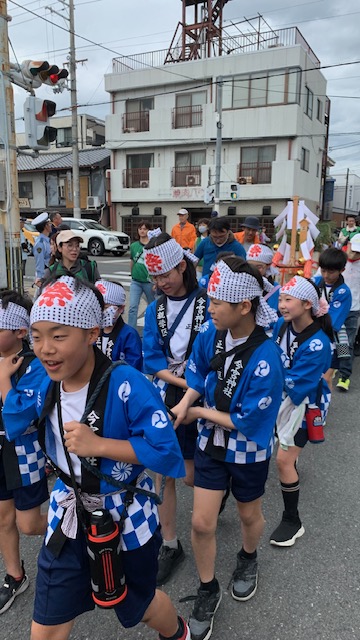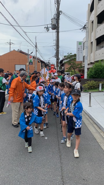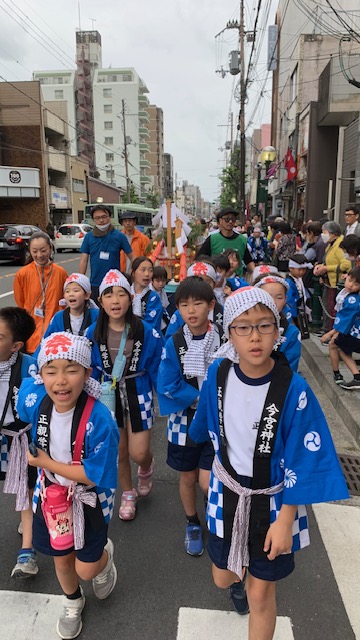 40名を超える子どもたちが、今宮祭のこどもみこしに参加しました。大きな掛け声で力を合わせて引いていました。