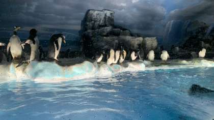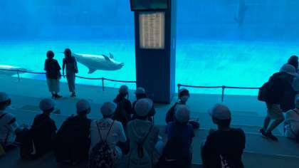 名古屋港水族館に到着しました。海のいきものを見学しています。ペンギンが手を振ってくれていました。