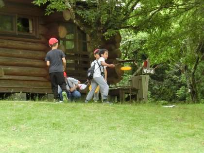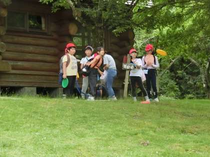 昼食のお弁当を食べた後、フライングディスクゴルフをしました。