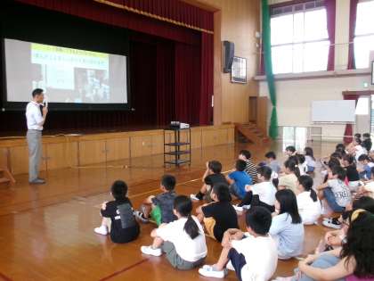1学期最後の日、終業式を行いました。体育館は朝でもとても暑かったですが、子どもたちはしっかり校歌を歌ったり、お話を聞いたりすることができました。