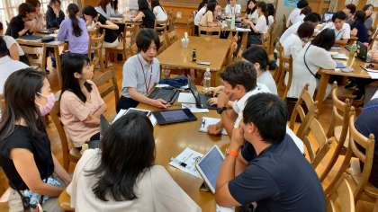 昨日の午後、二条城北小において二条中学校ブロック(正親小、二条城北小、二条中)の教員研修会を行いました。小中9年間で子どもたちに育みたい資質・能力をもとに1学期の実践を交流し、2学期からの教育活動に生かしていくための行動目標を考えました。