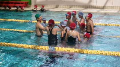 1.2年生は今日から星の子スイミングスクールで「みずあそび」の学習を始めました。こどもたちは「今日は楽しみ!」と朝から,ワクワクしている様子でした。ビート板を使ったり,水の中に滑り台を作ってもらったり,それぞれのレベルにあった指導をコーチにしていただきました。これからもっともっと上手くなりそうですね。楽しみです。