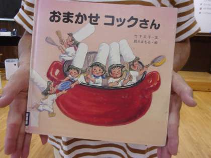 図書ボランティアさんによる朝の読み聞かせをしていただきました。読んでいただいた本は「おまかせコックさん」という絵本です。おいしそうな食材がでできて朝からお腹がすきました(^^)子どもたちはとても楽しんでいました。