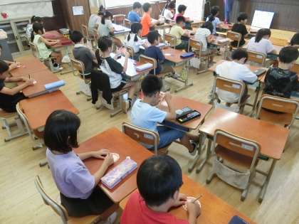 9月の人権月間の取組で、人権集会を行いました。暑さ対策により、子どもたちは校長の話を教室からリモートで聞きました。