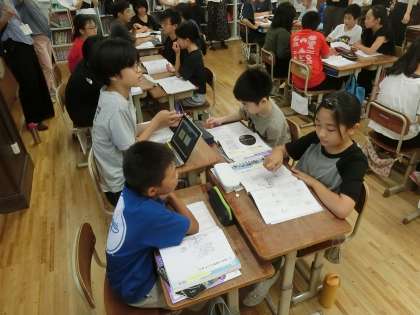 いじめられている1人の子を取り巻く、14人の「わたしのせいじゃない」と言っている子どもたちの考え方から、いじめに対する傍観者としての無責任な気持ちがいじめを生んでいることを理解し、いじめを断ち切るために社会正義を貫こうとする態度を養うことをねらいとした学習でした。いじめはだめだとわかっていても、自分でどうしたらよいのだろうかと葛藤する中で、いじめを断ち切ろうと自分事として考えを発表している様子が見られました。