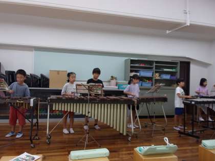 「ゆかいな木きん」を合奏しました。鍵盤ハーモニカ・リコーダー・タンブリン・ウッドブロック・木琴・鉄琴を使って演奏しました。リズムを確認しながら、自分たちで工夫して練習をしています。