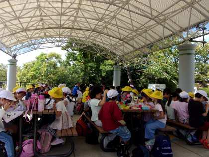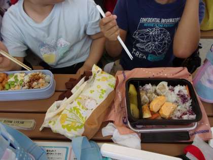 お待ちかねのお昼ご飯の時間では、グループみんなで仲良く楽しくお弁当をいただきました。みんな、お家の方の愛情たっぷりのお弁当を、とても嬉しそうな様子で頬張っていました。お忙しい中、ご準備ありがとうございました。