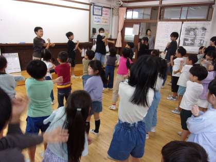 今日のチャレンジタイムの時間に、6年生のお兄さん、お姉さんが運動会の全校ダンスを教えにきてくれました。2週間後には運動会本番です。みんなで楽しく踊れるようにアドバイスしてもらいました。「どこが難しい?」「ここはこうするといいよ。」と優しく声をかける6年生は立派でした。本番に向けて、もっともっと上手くなろうね。