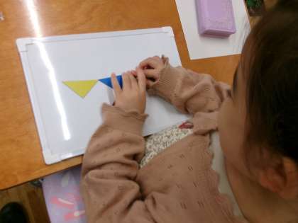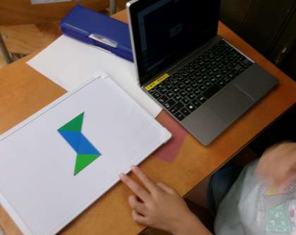 今日の5時間目は、校内研究の授業として、1年算数の授業を本校教職員が参観しました。たくさんの先生に見てもらうのも1年生にとってはうれしくて楽しいことなのかもしれません。ホワイトボードやタブレットを上手に使って、色板でいろいろな形を作ったり、どうやって作ったかを友達に伝えたりすることができました。