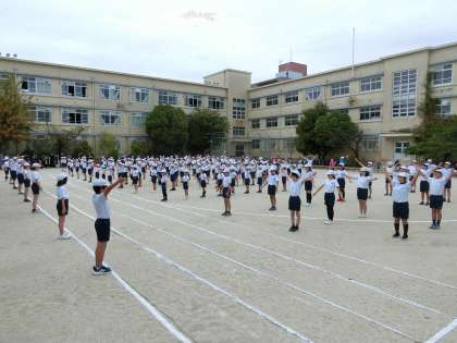 開会式、全校ダンス(準備体操)の様子です。