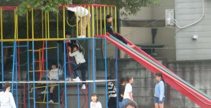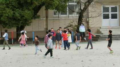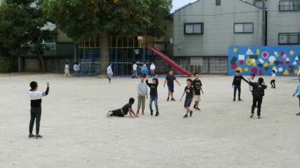 外遊びが大好きな子どもたち。笑顔いっぱいにして、元気に遊んでいます。
