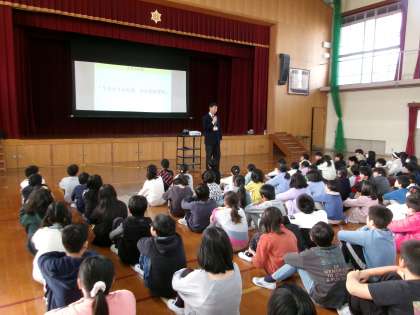 師走を迎え、寒さも厳しくなってきました。今朝は全校児童が体育館に集まって朝会を行いました。今日は「うけとりかたは ひとそれぞれ」をテーマに、情報モラルについて考えました。校長先生のお話をもとに、各学級で話し合いましたが、ぜひご家庭でも話題にしていただけたらと思います。内容は12月の学校だよりに掲載している「くろやぎさん」と「しろやぎさん」のお話です。
