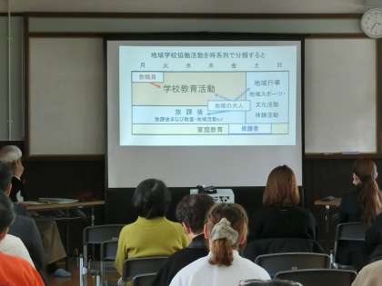 その後、4つの部会(学び充実委員会、文化・スポーツ委員会、防災・安全委員会、豊かな体験委員会)に分かれ、今年度1年間の取組をふり返り、成果と課題を交流して来年度につなげるために熟議を行いました。学校の働き方改革もふまえた話し合いが進められました。